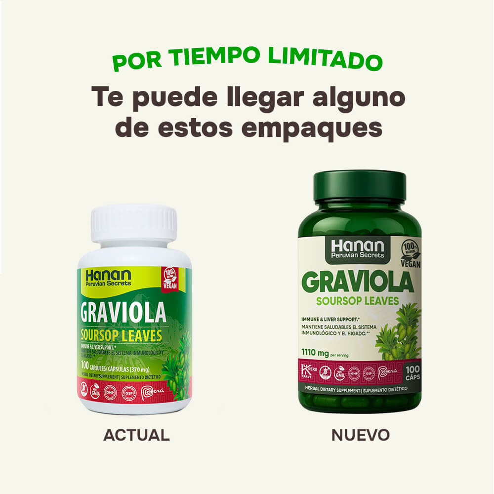 Cápsulas de Graviola Hanan 100 caps, excelente opción que ayuda a reforzar tu bienestar. Cuenta con propiedades antioxidantes e inmunomoduladoras, perfecta para fortalecer las defensas y el equilibrio celular.